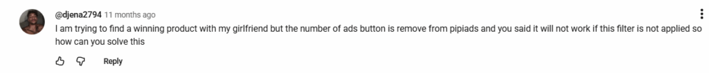 - Missing Features: A few users have mentioned that features like the "number of ads" filter have been removed, which has affected their ability to search for winning products effectively. This has led to dissatisfaction, as some functions that were previously valuable are no longer accessible.
