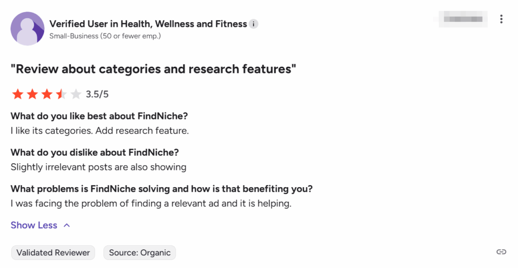- Irrelevant Posts & Feature Requests: Some users have pointed out that irrelevant posts sometimes appear, which reduces research efficiency. While this is a minor issue, it can be improved to provide a smoother user experience, such as more relevant and accurate ad research features.