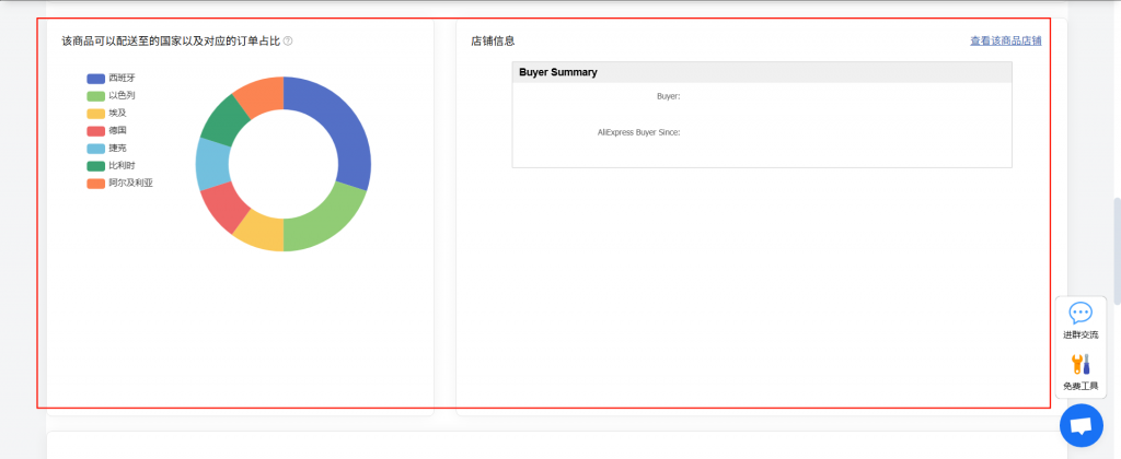 配送地比例图(商品销往的国家,即好利市场占比)和店铺信息,点击可查看该商品的店铺,更多店铺详情点击速卖通店铺